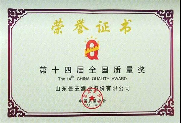 源于多年積淀的品質實力,景芝酒業2012年1月獲山東省省長質量獎,是魯酒中迄今為止唯一獲此殊榮的白酒企業;2014年10月獲全國質量領域最高管理獎——全國質量獎,成為繼茅臺、五糧液之后全國第四家獲此殊榮的白酒企業。景芝以無可置疑的“高質量標準”,成為了魯酒乃至中國白酒高質量的標桿企業。2019年,一品景芝榮獲全國白酒品評第一名。