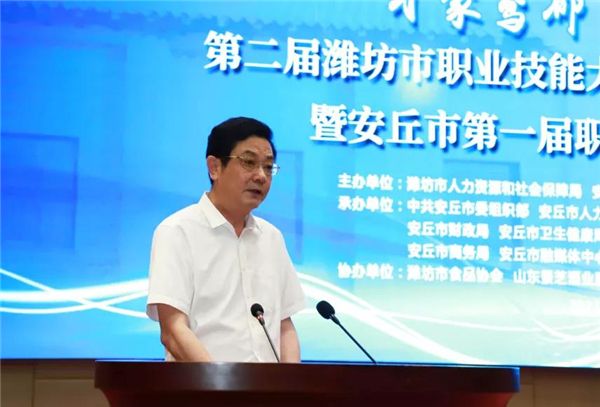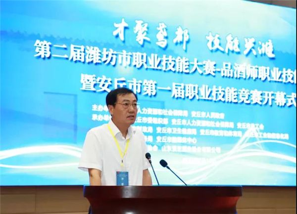 安丘市政府領導曹忠誠發表致辭。指出,這次高規格比賽在安丘齊魯酒地舉辦,既是對安丘市技能人才培養工作的充分信任和肯定,更是對人才工作的一次大促進、大考驗,是弘揚工匠精神的重要舉措,必將帶動全市人才技能水平整體提高,為全市技能人才隊伍建設貢獻安丘力量。